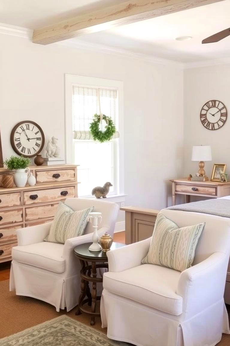 Discover the allure of shabby chic elegance, where soft, worn textures meet refined details to create a charming country bedroom. Distressed furniture, faded linens, and gently patinated decor items come together to form a balanced, vintage look that feels both elegant and relaxed. This style emphasizes comfort through its layered fabrics and carefully curated antiques, inviting you to enjoy a lived-in yet sophisticated space. The combination of casual charm with delicate, elegant accents makes this idea a timeless choice for those seeking a bedroom that radiates warmth and understated beauty.