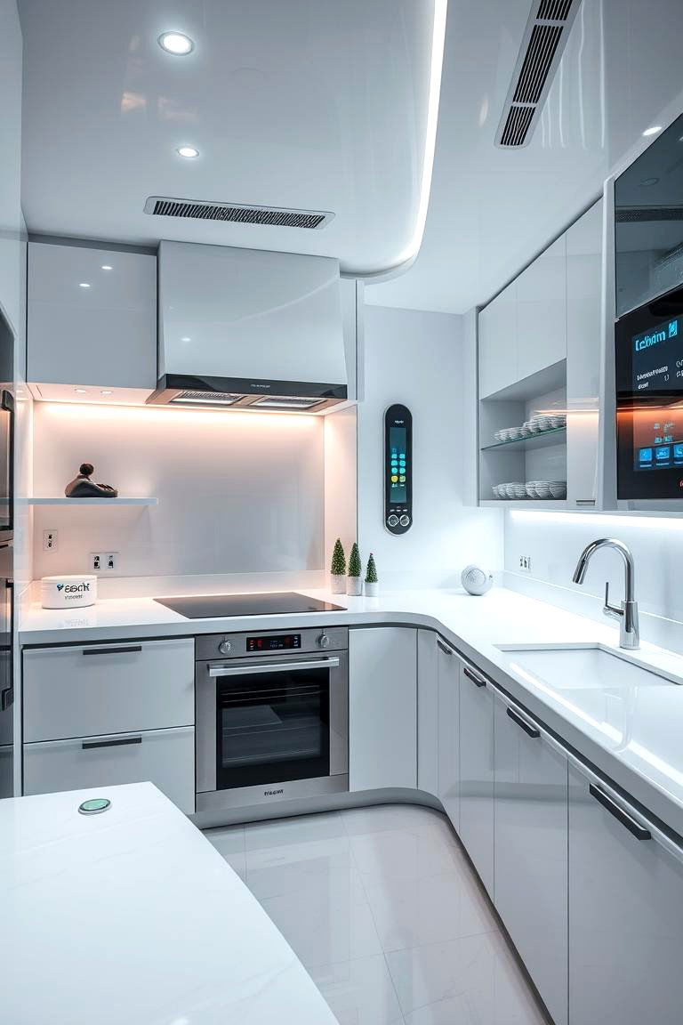 For a futuristic edge, integrate smart high-tech elements that redefine your kitchen experience. Advanced appliances, automated systems, and energy-efficient solutions streamline daily tasks and elevate functionality. Touch-controlled devices and intelligent lighting systems add a modern twist while ensuring safety and ease of use. The design creates a dynamic environment where technology meets practicality, turning routine meal preparation into a seamless process. Enjoy a cutting-edge hub that blends modern innovation with sleek aesthetics in every detail.