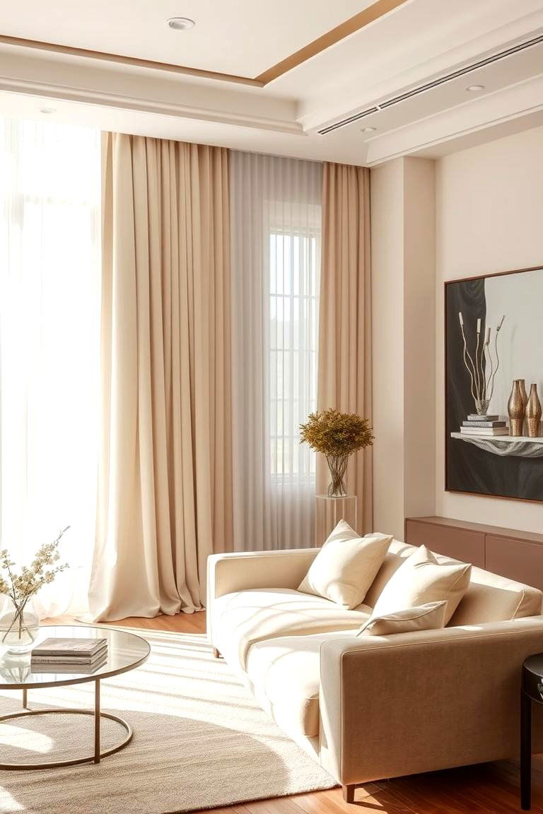 Looking to enhance movement and softness in your living room? Flowing curtains and draperies create an elegant atmosphere that welcomes gentle energy. Choose light, airy fabrics that diffuse natural light and add a sense of fluidity to the space. These window treatments not only soften the overall ambiance but also introduce texture and depth into your décor. Their graceful movement symbolizes the effortless flow of energy, enhancing relaxation and visual harmony. With carefully chosen draperies, you can elevate your living room into a sophisticated haven that balances style with a soothing, natural rhythm.