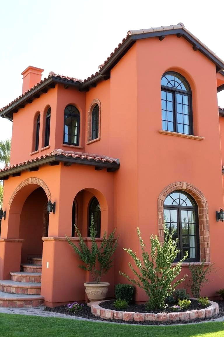 This Mediterranean-inspired design with natural clay siding exudes vibrant warmth and relaxed elegance. Rich terracotta tones blend with soft natural textures to evoke a timeless coastal vibe. The design combines arched windows, rustic detailing, and smooth clay finishes, creating a harmonious balance between tradition and modern living. Homeowners enjoy the practical benefits of durable, low-maintenance materials that also offer a unique aesthetic appeal. The design not only enhances curb appeal but also fosters an inviting atmosphere perfect for leisurely outdoor gatherings and family moments.