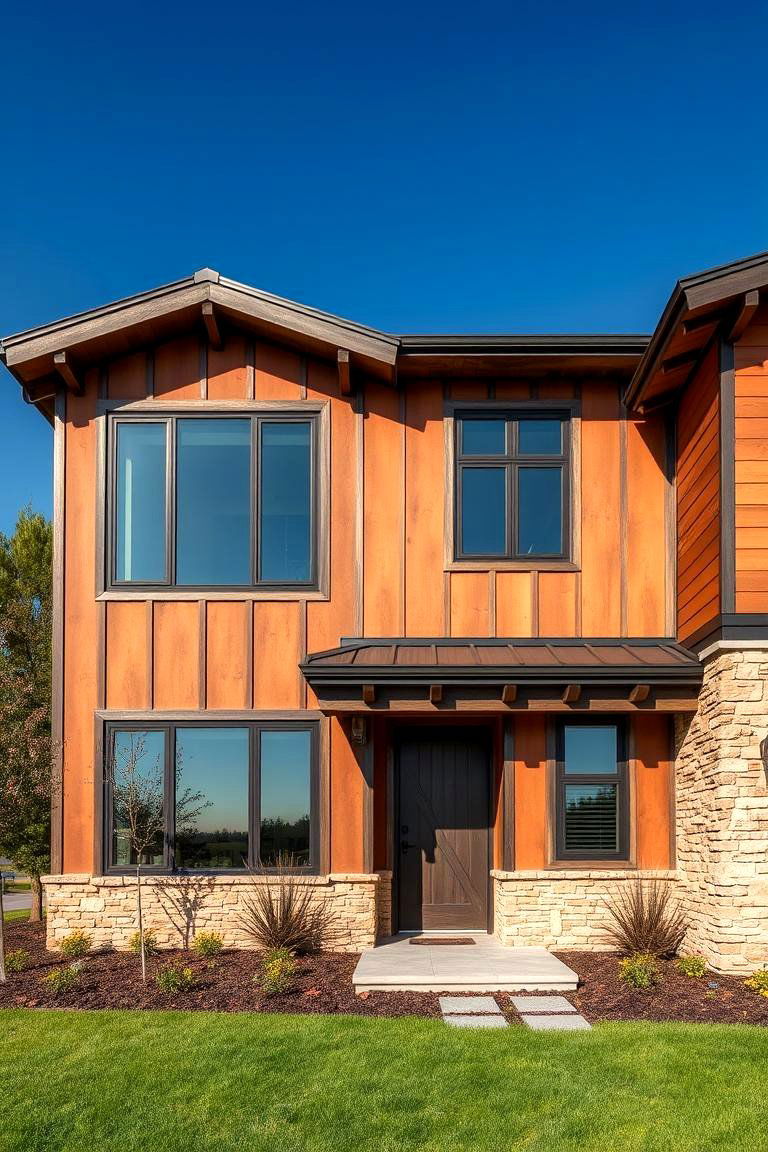 Consider a rustic-modern fusion that marries the earthy charm of natural clay with contemporary design elements. This innovative approach uses clay siding to create textured exteriors that offer both visual interest and practical benefits. The design incorporates sustainable materials, energy-efficient features, and a mix of traditional and modern accents that appeal to diverse tastes. Homeowners appreciate the blend of old-world craftsmanship with current trends, resulting in a durable and stylish façade. This fusion design stands out as an exceptional choice for those seeking a balance between heritage and modern innovation.