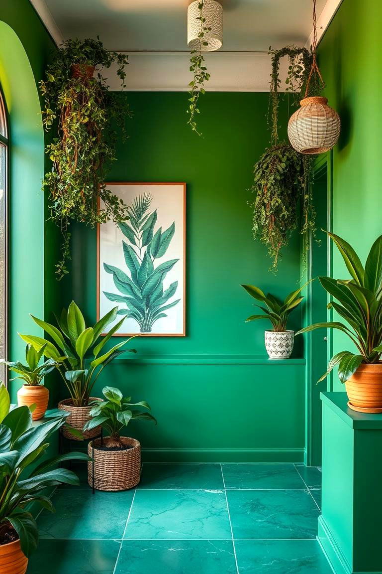 According to experts, an Artistic Jade Showcase elevates your bedroom by turning it into a canvas of creative expression. Rich, vibrant jade tones serve as the perfect backdrop for curated art pieces, unique decor items, and bold design elements. Mixing modern aesthetics with artistic flair results in a room that is both functional and visually arresting. Layer textured fabrics, abstract art, and sculptural accents to amplify the artistic vibe, making your space a true showcase of individuality.