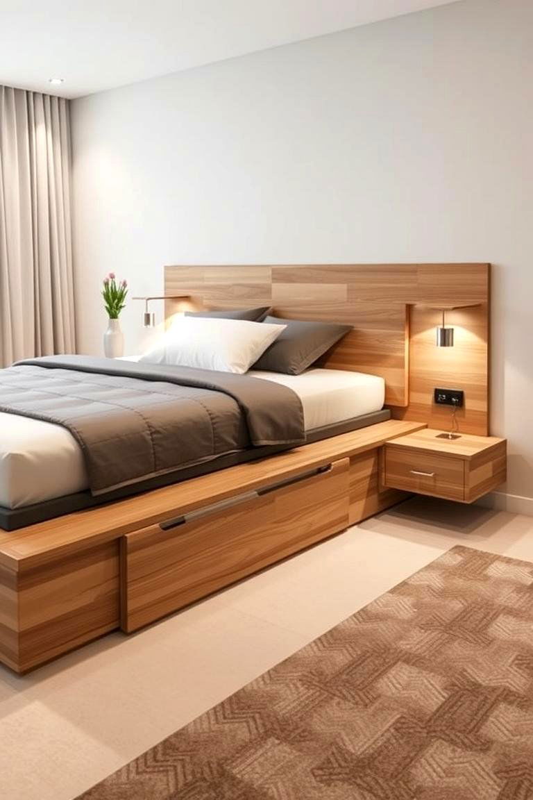 A floating bed that incorporates built-in storage can replace a traditional headboard while offering practicality and style. The floating design gives your bedroom a modern, sleek look, and the integrated storage beneath the bed helps keep the room organized and clutter-free. This option is perfect for those with limited space who want to maximize functionality without sacrificing aesthetics.